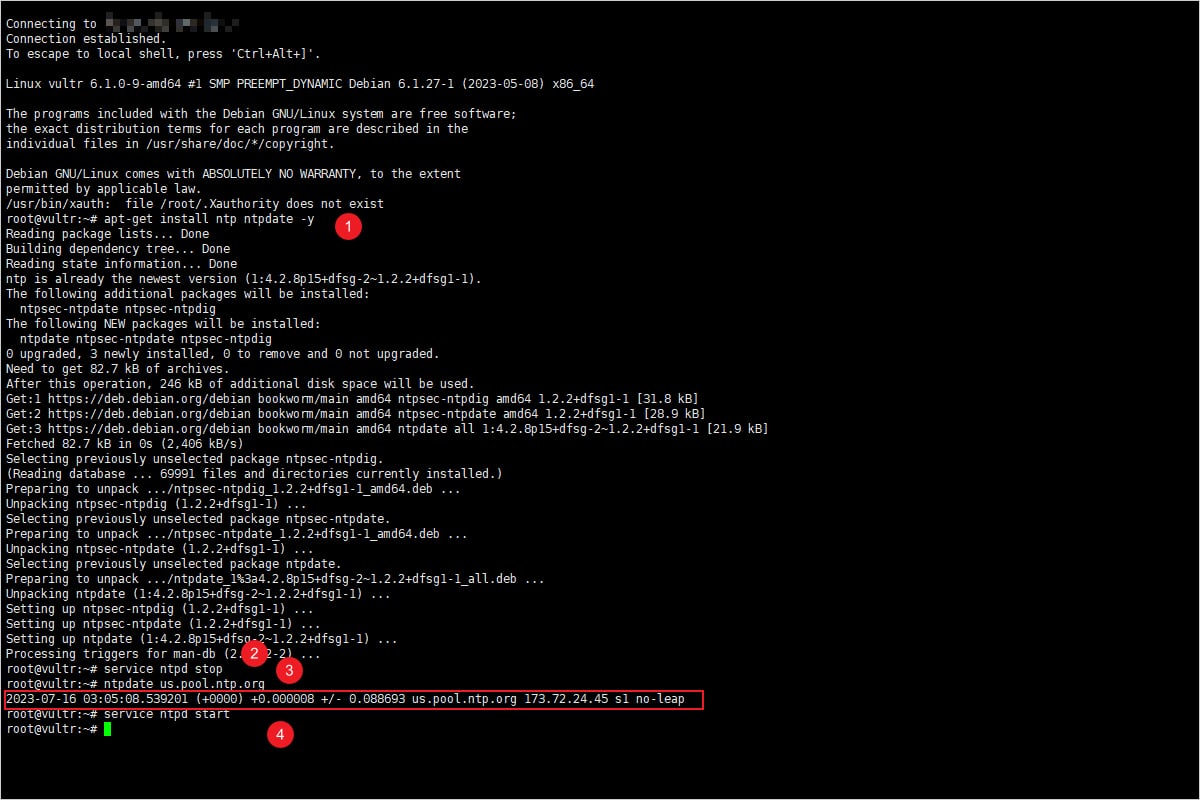 安装完成后,先停止当前 VPS 服务器的 NTP 服务
