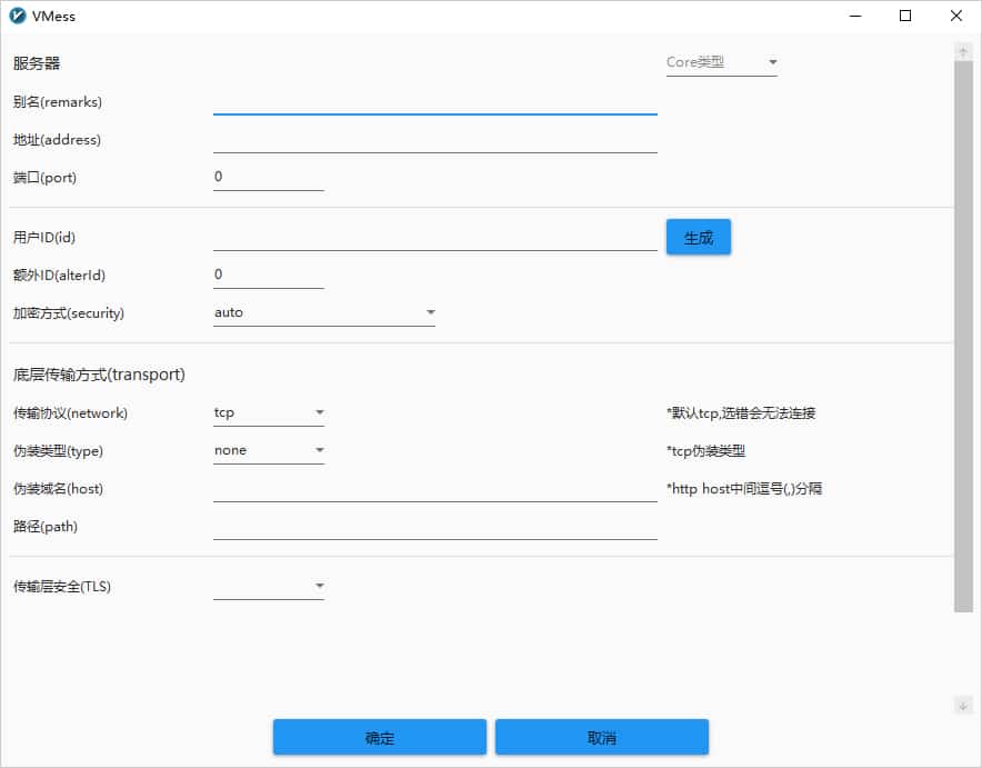 在添加窗口输入V2Ray服务器节点信息,即可配置V2Ray服务器信息,然后点击确定保存,如下图所示。